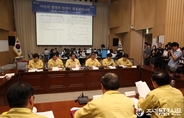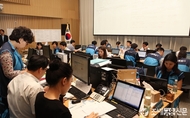 (조세금융신문=전한성 기자) 새정치민주연합 문재인대표가 9일 오후 서울시청에 마련된 '서울시메르스 대책본부'를 방문해 박원순 시장과 함께 현황보고를 듣고 서울시의 지원요청 사항을 청취한 가운데대책본부 관계자들이 바쁘게 업무를 보고 있다.
