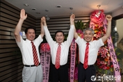 (조세금융신문=전한성 기자) 9일 오후 제29대 한국세무사회장 선거에 나선 기호 1번이창규 후보의 선거사무소 개소식이 '메르스 사태' 여파로 공식적인 행사를 취소한 가운데 이(가운데) 후보와 러닝메이트인 이수화(왼쪽), 김종화 부회장 후보가기념사진을 촬영하고 있다.