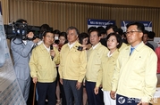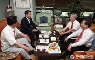 (조세금융신문=전한성 기자) 새정치민주연합 문재인(사진왼쪽 두번째)대표가 9일 오후 서울시청에 마련된 '서울시메르스 대책본부'를 방문해 박원순(사진 가운데)시장과 함께 현황보고를 듣고 있다.