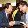 (조세금융신문=전한성 기자) 제29대 한국세무사회장선거 투표가 동시에 진행될 '대구지방세무사회 제41회 정기총회'가 23일 오전 대구 수성구 만촌동 인터불고 호텔에서 열린 가운데최원두(왼쪽) 윤리위원장 후보가 회원들과 악수를 나누고 있다. 최 후보는 단독입후보로 무투표 당선을 확정시킨 상태이다.