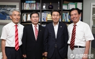 (조세금융신문=전한성 기자) 9일 오후 제29대 한국세무사회장 선거에 나선 기호 1번이창규 후보의 선거사무소 개소식이 '메르스 사태' 여파로 공식적인 행사를 취소한 가운데 정구정 한국세무사회장이 방문해 기념촬영을 하고 있다.왼쪽부터 김종화 부회장 후보, 이 후보, 정 회장, 이수화 부회장 후보.