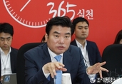(조세금융신문=전한성 기자) 제29대 한국세무사회장 선거에 나선 기호 2번조용근 후보의 선거사무소 개소식이 8일 오후에 열린 가운데 조 후보의 러닝메이트 신광순 부회장 후보가 인사말을 하고 있다.