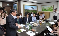(조세금융신문=전한성 기자) 제29대 한국세무사회장 선거에 나선 기호 2번조용근 후보의 선거사무소 개소식이 8일 오후에 열린 가운데 조 후보가 개소식 전 청년 세무사들과 만나 대화를 나누고 있다.