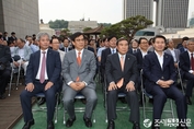(조세금융신문=전한성 기자) 제29대 한국세무사회장 선거에 나선 기호 2번조용근 후보의 선거사무소 개소식이 8일 오후에 열린 가운데 정구정(오른쪽부터) 한국세무사회장, 조 후보, 신광순 부회장 후보, 안수남 부회장 후보가 나란히 앉아 있다.