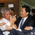 (조세금융신문=전한성 기자) 제29대 한국세무사회장선거 투표가 동시에 진행될 '중부지방세무사회 제34회 정기총회'가 19일 오후 서울 여의도 63 컨벤션센터에서 열린 가운데 안수남(왼쪽) 부회장 후보가 임순천 부회장에게 정구정 회장의 '더존' 발언과 관련 강하게 항의하고 있다.