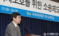 (조세금융신문=전한성 기자) 장발장은행(은행장 홍세화) 설명회인 '국회로 간 장발장'이 4일 오후 서울 여의도 국회 의원회관에서 열린 가운데 새정치민주연합 홍종학 의원이축사를 하고 있다.이번 설명회는4만 명이 넘는 가난한 시민들이 단지 벌금을 내지 못해 교도소에 가는 안타까운 현실을 전하고, 이를 개선하기 위한 벌금제 개혁 법안의 필요성을 국회의원과 시민들에게 설명하기 위해 마련했다. 장발장은행은 벌금형을 선고 받고도 이를 낼 돈이 없어 교도소에 갇히는 이들을 위해 무담보, 무이자 대출을 진행하고 있으며, 시민 모금으로 운영되는 장발장은행은 지금까지 981명의 개인 및 기관, 단체에서 3억2232만641원을 모금했고, 9차에 걸쳐 총 155명에게 2억8608만8400원을 대출했다고 전했다.