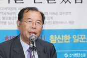 (조세금융신문=전한성 기자) 제29대 한국세무사회장 선거에 나선 기호 4번 백운찬 후보의 선거사무소 개소식이 5일 오후에 열린 가운데 백 후보가 출마소견문을 읽고 있다.