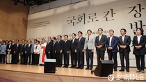 (조세금융신문=전한성 기자) 장발장은행(은행장 홍세화) 설명회인 '국회로 간 장발장'이 4일 오후 서울 여의도 국회 의원회관에서 열린 가운데 내빈들이 기념촬영을 하고 있다.이번 설명회는4만 명이 넘는 가난한 시민들이 단지 벌금을 내지 못해 교도소에 가는 안타까운 현실을 전하고, 이를 개선하기 위한 벌금제 개혁 법안의 필요성을 국회의원과 시민들에게 설명하기 위해 마련했다. 장발장은행은 벌금형을 선고 받고도 이를 낼 돈이 없어 교도소에 갇히는 이들을 위해 무담보, 무이자 대출을 진행하고 있으며, 시민 모금으로 운영되는 장발장은행은 지금까지 981명의 개인 및 기관, 단체에서 3억2232만641원을 모금했고, 9차에 걸쳐 총 155명에게 2억8608만8400원을 대출했다고 전했다.
