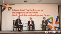 (조세금융신문=전한성 기자) '국제조세 컨퍼런스 - 개발과 지속가능한 성장을 위한 조세정책 컨퍼런스'가 4일 오전 서울 중구 소공로 웨스틴조선호텔에서 개막한 가운데 제임스 브럼비(왼쪽부터) 세계은행 국장, 문창용 기획재정부 세제실장, 김준경 KDI 원장이 나란히 앉아 있다.이번 컨퍼런스는 기획재정부가 세계은행(WB)과 공동으로 4일부터 이틀 간 진행하며, 문창용 세제실장의 개회사를 시작으로 최근의 조세개혁 이슈와 방향을 논의하고각국의 조세개혁 사례도 논의된다.