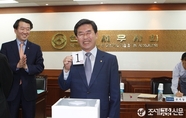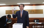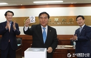 (조세금융신문=전한성 기자) 제29대 한국세무사회장선거 기호추첨이 2일 오후 서울 서초구 한국세무사회관에서 열린 가운데1번을 뽑은 이창규 후보가기념촬영을 하고 있다.