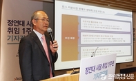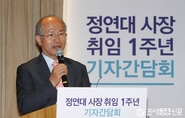 (조세금융신문=전한성 기자) '코스콤 정연대 사장 취임 1주년 기자간담회'가 3일 오전 서울 영등포구여의도 코스콤 대강당에서 열린 가운데 정 사장이 인사말을 하고 있다.