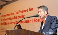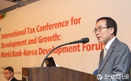 (조세금융신문=전한성 기자) '국제조세 컨퍼런스 - 개발과 지속가능한 성장을 위한 조세정책 컨퍼런스'가 4일 오전 서울 중구 소공로 웨스틴조선호텔에서 개막한 가운데 김준경 KDI 원장이 인사말을 하고 있다.이번 컨퍼런스는 기획재정부가 세계은행(WB)과 공동으로 4일부터 이틀 간 진행하며, 문창용 세제실장의 개회사를 시작으로 최근의 조세개혁 이슈와 방향을 논의하고각국의 조세개혁 사례도 논의된다.