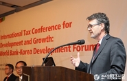 (조세금융신문=전한성 기자) '국제조세 컨퍼런스 - 개발과 지속가능한 성장을 위한 조세정책 컨퍼런스'가 4일 오전 서울 중구 소공로 웨스틴조선호텔에서 개막한 가운데 제임스 브럼비 세계은행 국장이 인사말을 하고 있다.이번 컨퍼런스는 기획재정부가 세계은행(WB)과 공동으로 4일부터 이틀 간 진행하며, 문창용 세제실장의 개회사를 시작으로 최근의 조세개혁 이슈와 방향을 논의하고각국의 조세개혁 사례도 논의된다.