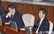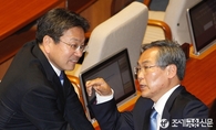 (조세금융신문=전한성 기자) 소득세법 일부개정법률안을 다룰 제333회 국회(임시회) 제1차 본회의가 12일 오후 개의된 가운데 지난 8일 오전 새정치민주연합 최고위원회의에서정청래(오른쪽) 최고위원의이른바 '공갈' 발언으로 자리를 박차고 나간 주승용 최고위원이 어색한듯나란히 앉아 있다.
