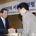 (조세금융신문=전한성 기자) 서울시가 3일 오후서울시청 3층 대회의실에서 서울형 혁신 기업 창업을 지원하기 위한 민·관·창업지원기관협의체인 '100인의 서울창업포럼' 출범식을 개최한 가운데 박원순(왼쪽) 서울시장이 각 분과 위원장들에게 위촉장을 수여하고 있다.100인의 서울창업포럼은 정책연구와 멘토링 기능을 확대해 창업 생태계 강화를 위한 '창업 정책 허브' 기능을 수행할 예정이며,포럼에는 대학, 기관, 액셀러레이터를 포함해 서울시 성공창업가와 미디어·마케팅 전문가, 스타트업 펀드 운용사 등 창업 분야 전문가, 구성원이 참여했다.포럼은 6월부터 10월 말까지 5개월간 ▲ 브랜드 ▲ 교육 ▲ 투자 ▲ 지원사업 ▲ 마케팅 5개 분과 논의를 진행해 최종 제안 내용을 제출하며, 11월에는 분과별 성과를 상호평가하고 발표하는 자리를 갖는다. 포럼 활동성과를 담은 자료집을 발간해 시민에게 배포할 계획이다.