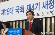 (조세금융신문=전한성 기자) 새정치민주연합의 새로운 원내대표를 선출하는 '제60차 의원총회 - 제19대 국회 제4기 새정치민주연합 원내대표 선거'가 7일 오후 서울 여의도 국회에서 열린 가운데 우윤근 원내대표가 동료 의원에게 인사말을 전하고 있다.