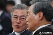 (조세금융신문=전한성 기자) 7일 오후 서울 여의도 국회에서 열린'제60차 의원총회 - 제19대 국회 제4기 새정치민주연합 원내대표 선거'에서 4선의 이종걸 의원이 결선 투표 끝에 최재성 후보를 누르고 신임 원내대표로 선출된 가운데 문재인 대표가 우윤근 전 원내대표와 대화 나누고 있다.