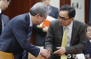 (조세금융신문=전한성 기자) 경제관계장관회의가 7일 오전 서울 세종로 정부서울청사에서 열린 가운데 임종룡(왼쪽) 금융위원장과 김종 문화체육관광부 제2차관이 악수 나누고 있다.