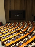 (조세금융신문=전한성 기자) 6일 오후 2시에 열린 예정이었던 본회의가 공무원연금법 개정안과국민연금 소득대체율 50% 인상이라는 수치를 명문화하는 것과 관련해 여야가 이견을 보이면서 오후 4시로 연기된 가운데 본회의장에 의원들이 참석하지 않은 채 텅 비어있다.