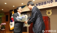 (조세금융신문=전한성 기자) 김용환 신임 NH농협금융지주 회장의 취임식이 29일 오전 서울 중구 농협 본관 중회의실에서 열린 가운데 김 회장이 김정식 농협중앙회 전무이사로부터 꽃다발을 건네받고 있다.김용환 회장은 이날 취임식에서 튼튼한 건정성 토대 위에서 외형에 걸맞는 내실있는 수익성 확보라는 농협금융 본연의 역활에 충실하고, 농협중앙회 및 농협경제와 상호협력을 통한 시너지 창출, 직원 전문성 교육 강화, 해외진출을 통한 신사업 발굴 육성, 농업인·서민금융 지원 및 소비자보호 강화 등 사회적 책임을 다하는 농협금융의 공익적 가치를 더욱 높여 나가겠다는 계획을 밝혔다.또한, 이날 아침 취임식전 노동조합 사무실을 가장 먼저 방문하여 직원들과의 적극적인 소통으로 생생한 현장의 목소리를 청취하고, 농협금융이 직면한 현안들을 슬기롭게 해결해 나가겠다고 밝혔다.