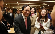 (조세금융신문=전한성 기자) 김용환 신임 NH농협금융지주 회장의 취임식이 29일 오전 서울 중구 농협 본관 중회의실에서 열린 가운데 김 회장이 기자들과 악수 나누고 있다.김용환 회장은 이날 취임식에서 튼튼한 건정성 토대 위에서 외형에 걸맞는 내실있는 수익성 확보라는 농협금융 본연의 역활에 충실하고, 농협중앙회 및 농협경제와 상호협력을 통한 시너지 창출, 직원 전문성 교육 강화, 해외진출을 통한 신사업 발굴 육성, 농업인·서민금융 지원 및 소비자보호 강화 등 사회적 책임을 다하는 농협금융의 공익적 가치를 더욱 높여 나가겠다는 계획을 밝혔다.또한, 이날 아침 취임식전 노동조합 사무실을 가장 먼저 방문하여 직원들과의 적극적인 소통으로 생생한 현장의 목소리를 청취하고, 농협금융이 직면한 현안들을 슬기롭게 해결해 나가겠다고 밝혔다.