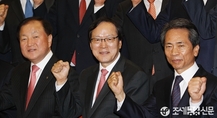 (조세금융신문=전한성 기자) 김용환 신임 NH농협금융지주 회장의 취임식이 29일 오전 서울 중구 농협 본관 중회의실에서 열린 가운데 김 회장(가운데)이 계열사 임직원들과파이팅을 외치고 있다.김용환 회장은 이날 취임식에서 튼튼한 건정성 토대 위에서 외형에 걸맞는 내실있는 수익성 확보라는 농협금융 본연의 역활에 충실하고, 농협중앙회 및 농협경제와 상호협력을 통한 시너지 창출, 직원 전문성 교육 강화, 해외진출을 통한 신사업 발굴 육성, 농업인·서민금융 지원 및 소비자보호 강화 등 사회적 책임을 다하는 농협금융의 공익적 가치를 더욱 높여 나가겠다는 계획을 밝혔다.또한, 이날 아침 취임식전 노동조합 사무실을 가장 먼저 방문하여 직원들과의 적극적인 소통으로 생생한 현장의 목소리를 청취하고, 농협금융이 직면한 현안들을 슬기롭게 해결해 나가겠다고 밝혔다.