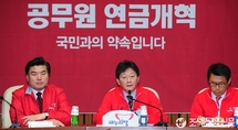 (조세금융신문=전한성 기자) 새누리당 원내대책회의가 28일 오전 서울 여의도 국회에서 열린 가운데 유승민(가운데) 원내대표가 모두발언에서 공무원연금개혁 처리를 촉구하고 있다.