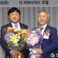(조세금융신문=전한성 기자) '2015년도 세무대학세무사회 정기총회'가 28일 오후 서울 서초구 강남대로 리버사이드호텔에서 열린 가운데 신임 회장으로 선출된 김승한(오른쪽) 회장이 전임 이종탁 회장과 꽃다발을 들고 기념촬영을 하고 있다.