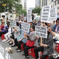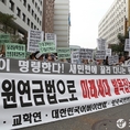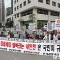 (조세금융신문=전한성 기자) 경우회·어버이연합·보수국민연합 등 보수단체 회원들이 15일 오후 서울 여의도새누리당사 앞에서 열린 '경제 활성화 법안 통과 촉구' 집회에서 새누리당과 새정치민주연합의공무원연금법 처리 지연을 규탄하는 구호를 외치고 있다.