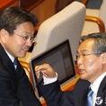 (조세금융신문=전한성 기자) 소득세법 일부개정법률안을 다룰 제333회 국회(임시회) 제1차 본회의가 12일 오후 개의된 가운데 새정치민주연합 우윤근(오른쪽) 전 원내대표가 강기정 의원과 대화 나누고 있다.