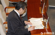 (조세금융신문=전한성 기자) 제332회 국회(임시회) 제5차 본회의가 14일 오전 10시에 개의된 가운데 새누리당 김무성 대표가 자료를 살피고 있다.오늘 본회의에선 외교·통일·안보에 관한 대정부 질문과 아베 정부의 독도 영유권 침탈 및 고대사 왜곡에 대한 규탄 결의안이 의결될 예정이다.
