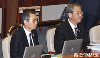 (조세금융신문=전한성 기자) 경제 분야 대정부질문이 열린제332회 국회(임시회) 제6차 본회의가 15일 오전 서울 여의도 국회 본회의장에서개의된 가운데 정재찬(왼쪽) 공정거래위원장과 임종룡 금융위원장이 참석해 나란히 앉아 있다.