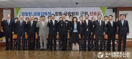 (조세금융신문=전한성 기자) '경찰청·금융감독원 합동 금융범죄 근절 선포식'이 13일 오후 서울 서대문구 미근동 경찰청에서 개최된 가운데 내빈들이 기념촬영을 하고 있다.오늘 선포식은 경찰·금감원이 지속적인 단속에도 불구하고 서민·취약계층을 대상으로 한 금융범죄 피해가 지속적으로 증가함에 따라 양 기관이 금융범죄 척결의지를 강력하게 표명하여 범행 시도를 원천 차단하고, 민생경제 보호와 경제활성화에 기여하고자 마련됐다.경찰청과 금융감독원은 이번 선포식을 통해, ▲ 금융범죄 공동 대응을 위한 핫라인 설치 ▲ 경찰의 수사·단속 및 금감원의 감독·제도개선 간 연계 ▲ 금융범죄에 대한 공동 피해예방 대책 및 홍보 등을 추진하며, 은행연합회 등 주요 금융협회에서도 대포통장 발생억제, 전화금융사기·보험사기·불법사금융 수사협조, 피해예방 홍보 등 자체적인 방안을 마련해 나갈 예정이다.