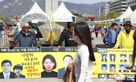 (조세금융신문=전한성 기자) '세월호 참사 1주기'를 앞둔 13일 오후, 서울 광화문광장에 희생자 유가족들이 9명의 실종자들의 사진이 붙어있는 피켓을 들고 세월호 인양을 촉구하고 있다.