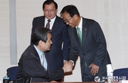 (조세금융신문=전한성 기자) '새누리당 중소기업·소상공인 특별위원회 제3차 회의'가 9일 오후 2시 서울 여의도 중소기업중앙회에서 열린 가운데 김무성 새누리당 대표와 김낙회 관세청장이 악수 나누고 있다.이번 회의는내수부진으로 어려움을 겪고 있는 중소기업의 내수경기 활성화를 위해 시장진입 애로해결을 중심으로 대화를 나눴다.새누리당은 기술개발제품 시장창출을 위해 공공기관의 중소기업 기술개발제품 구매비율(10%)을 의무적으로 달성하도록 판로지원법 개정을 추진하고, 소액 공개수의 계약(2천만원~5천만원)시, 대기업의 입찰참여를 제한하고, 불공정 행위 대기업에 대해서는 공공조달 입찰참가 제한 기간을 확대(3개월->6개월)하여 불공정행위를 사전 차단키로 하였다.