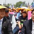 (조세금융신문=전한성 기자) 전국금융산업노동조합(위원장 김문호)이 5월 1일 근로자의 날을 맞아 서울 여의도 문화마당에서 조합원 5만명이 참석하는 '전국금융노동자대회'를 개최한 가운데새정치민주연합 오영식(왼쪽) 최고위원과 김기준 의원이 참석해 나란히 앉아 있다.금융노조는 이날 집회에 한국노조조합총연맹 소속 노조로는 이례적으로 집회에 한상균 민주노동조합총연맹 위원장과 김동만 한국노총 위원장을 모두 초청하는 등 정부의 노동시장 구조개혁 추진에 대항해 전면전에 나설 방침이며, 특히 양대노총 위원장이 노동시장 구조개혁에 대한 공동대응 기조를 천명했다.현재 정부는 노동시장 구조개혁에 대한 노사정협상이 결렬되자 ▲ 일반해고 요건 완화 ▲ 취업규칙 불이익변경요건 완화 ▲ 직무성과급제 및 임금피크제 전면 도입 ▲ 기간제 사용기간 연장 및 파견업종 확대 등을 정부 단독으로 추진하겠다는 방침을 고수하고 있고, 반면 금융노조는 정부의 이런 정책이 가장 먼저 공공부문과 시중은행 노동자들에게 강제로 시행될 것이라며 강력 반발하고 있는 상태이다.김문호 금융노조 위원장은 "이명박 정권 시절 정부는 일자리 창출을 명분으로 신입직원들의 초임을 20% 일괄 삭감하는 정책을 공공기