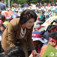 (조세금융신문=전한성 기자) 전국금융산업노동조합(위원장 김문호)이 5월 1일 근로자의 날을 맞아 서울 여의도 문화마당에서 조합원 5만명이 참석하는 '전국금융노동자대회'를 개최한 가운데새정치민주연합 한정애 의원이 노조 간부들과 악수 나누고 있다.금융노조는 이날 집회에 한국노조조합총연맹 소속 노조로는 이례적으로 집회에 한상균 민주노동조합총연맹 위원장과 김동만 한국노총 위원장을 모두 초청하는 등 정부의 노동시장 구조개혁 추진에 대항해 전면전에 나설 방침이며, 특히 양대노총 위원장이 노동시장 구조개혁에 대한 공동대응 기조를 천명했다.현재 정부는 노동시장 구조개혁에 대한 노사정협상이 결렬되자 ▲ 일반해고 요건 완화 ▲ 취업규칙 불이익변경요건 완화 ▲ 직무성과급제 및 임금피크제 전면 도입 ▲ 기간제 사용기간 연장 및 파견업종 확대 등을 정부 단독으로 추진하겠다는 방침을 고수하고 있고, 반면 금융노조는 정부의 이런 정책이 가장 먼저 공공부문과 시중은행 노동자들에게 강제로 시행될 것이라며 강력 반발하고 있는 상태이다.김문호 금융노조 위원장은 "이명박 정권 시절 정부는 일자리 창출을 명분으로 신입직원들의 초임을 20% 일괄 삭감하는 정책을 공공기관과 시중은행들을