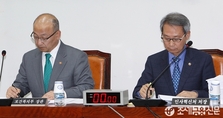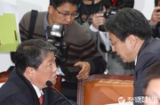 (조세금융신문=전한성 기자) 국회 공무원연금개혁 특별위원회 전체회의가 6일 오후 서울 여의도 국회에서 열린 가운데새누리당 조원진(왼쪽), 새정치민주연합 강기정 공동위원장이 대화 나누고 있다.7일로 만료되는 공무원연금개혁 특위는 활동기한을 다음달 2일로 25일간 연장했다.