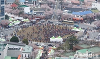 (조세금융신문) 매년 200만명의 국내외 관광객이 찾는 ‘제53회 진해 군항제’가 한창인 5일, 경남 창원시 진해구 제황산 정상에서 바라본 축제 행사장에 수 많은 인파가 몰려 있다.벚꽃축제로도 불리어지는 진해 군항제는 지난 1953년 4월 13일 우리나라 최초로 충무공 이순신 장군의 동상을 북원로터리에 세우고 추모제를 거행하여 온 것이 계기가 되었고, 이후 52년의 역사와 전통을 자랑하는 전국 최대 규모의 축제로서 자리잡고 있다.이번 축제는 10일까지 중원로터리 등 진해 일대에서 열리며 여좌천·제황산공원 별빛축제, 야간경관조명, 진해루 멀티미디어 해상 불꽃쇼 등 다양한 행사가 마련되어 있다.