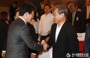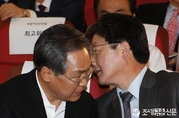 (조세금융신문=전한성 기자) 새정치민주연합과 민주정책연구원이 주최하는 '2015 다함께 정책엑스포'가 6일 오전 서울 여의도 국회 의원회관에서 개막식을 개최한 가운데 새누리당 유승민(오른쪽) 원내대표와 새정치민주연합 우윤근 원내대표가 귀엣말을 나누고 있다.정당 사상 최초로 열리는 이번 정책 엑스포는 오는 8일까지 3일간 열리며, 경제성장·복지·일자리 등 경제 담론을 중심으로 30여 차례의 정책토론회와 국회 앞마당에 설치된 106개 부스에서 정책소개와 체험 이벤트 등이 진행된다.