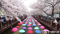 (조세금융신문) 매년 200만명의 국내외 관광객이 찾는 ‘제53회 진해 군항제’가 한창인 5일, 경남 창원시 진해구 여좌천 로망스다리 우산 조형물에 하루종일 내린 봄비에 벚꽃잎이 떨어져 있다.벚꽃축제로도 불리어지는 진해 군항제는 지난 1953년 4월 13일 우리나라 최초로 충무공 이순신 장군의 동상을 북원로터리에 세우고 추모제를 거행하여 온 것이 계기가 되었고, 이후 52년의 역사와 전통을 자랑하는 전국 최대 규모의 축제로서 자리잡고 있다.이번 축제는 10일까지 중원로터리 등 진해 일대에서 열리며 여좌천·제황산공원 별빛축제, 야간경관조명, 진해루 멀티미디어 해상 불꽃쇼 등 다양한 행사가 마련되어 있다.