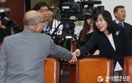 (조세금융신문=전한성 기자) 국회 공무원연금개혁 특별위원회 전체회의가 6일 오후 서울 여의도 국회에서 열린 가운데새누리당 김현숙 의원이 문형표 보건복지부 장관과 악수 나누고 있다.7일로 만료되는 공무원연금개혁 특위는 활동기한을 다음달 2일로 25일간 연장했다.