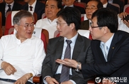 (조세금융신문=전한성 기자) 새정치민주연합과 민주정책연구원이 주최하는 '2015 다함께 정책엑스포'가 6일 오전 서울 여의도 국회 의원회관에서 개막식을 개최한 가운데 새정치민주연합 문재인(왼쪽부터) 대표와 새누리당 유승민 원내대표, 정의당 천호선 대표가 나란히 앉아 대화 나누고 있다.정당 사상 최초로 열리는 이번 정책 엑스포는 오는 8일까지 3일간 열리며, 경제성장·복지·일자리 등 경제 담론을 중심으로 30여 차례의 정책토론회와 국회 앞마당에 설치된 106개 부스에서 정책소개와 체험 이벤트 등이 진행된다.