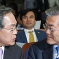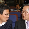 (조세금융신문=전한성 기자) 새정치민주연합이 27일 오후 서울 여의도 국회에서 긴급 의원총회를 열고 '친박권력형 비리게이트 진상규명 촉구 결의대회'를 개최한 가운데 문재인(오른쪽) 당 대표와 우윤근 원내대표가 대화 나누고 있다.