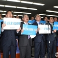(조세금융신문=전한성 기자) 새정치민주연합이 27일 오후 서울 여의도 국회에서 긴급 의원총회를 열고 '친박권력형 비리게이트 진상규명 촉구 결의대회'를 개최한 가운데 의원들이 박근혜 대통령의 사과와 특검을 요구하는 피켓을 들고 구호를 외치고 있다.