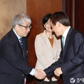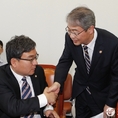 (조세금융신문=전한성 기자) 국회 정무위원회의 법안심사 소위원회가 27일 오후 서울 여의도 국회에서 열린 가운데 임종룡(오른쪽) 금융위원장이 새정치민주연합 이상직 의원과 악수 나누고 있다.오늘 소위원회에서는 금융회사의 지배구조에 관한 법률안, 상호저축은행법 일부개정법률안, 금융지주회사법 일부개정법률안, 자본시장과 금융투자업에 관한 법률 일부개정법률안 등을 논의할 전망이다.