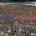 (조세금융신문=전한성 기자) '공적연금강화 국민행동'과 '공적연금강화를 위한 공동투쟁본부'가 25일 서울광장과 부산(14시 송상현 광장), 대구(14시 국채보상운동 기념 공원), 광주(14시 구 도청 민주의 거리) 등 전국 4곳에서 10만여 명이 참여하는 '공적연금강화 국민대회'를 공동으로 개최한 가운데 서울광장에 전국공무원노동조합원들이 운집해 있다.이번 집회는 한국에서 처음으로 기초연금, 국민연금 그리고 공무원사학연금 가입자들이 함께 모이는 대규모 집회로, 그동안 국민연금 개악, 기초연금 공약위반 그리고 최근 공무원연금에 이르기까지 공적연금을 축소하면서 국민의 노후를 더욱 빈곤과 불안으로 내몰고 있는 정부정책에 반대하면서, 공적연금 강화를 요구하고 촉구하기 위해 마련됐다.