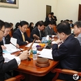 (조세금융신문=전한성 기자) 국회 기획재정위원회의 조세법안심사소위원회가 27일 오전 서울 여의도 국회에서 열린 가운데 참석자들이 회의 준비를 하고 있다.오늘 소위에선 소득세법 일부개정법률안, 조세특례제한법 일부개정법률안 등을 논의할 전망이다.