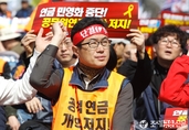 (조세금융신문=전한성 기자) 전국공무원노동조합(위원장 이충재)을 포함한 대한민국공무원노동조합총연맹, 전국교직원노동조합, 한국교원단체총연합회, 사학연금제도 개선을 위한 공동대책위원회 등 50여개 공무원단체가 함께 참여하는 '국민연금 강화! 공무원연금 개악저지! 총력투쟁 결의대회'가 28일 오후 2시 서울 여의도 문화마당에서 개최된 가운데 조합원이 피켓을 들고 있다.