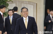 (조세금융신문=전한성 기자) KB금융지주의 '제7기 정기주주총회'가 27일 오전 10시 서울 여의도 KB금융 본점에서 열린 가운데 윤종규 KB금융지주 회장 겸 KB국민은행장이 입장하고 있다.이번 주총에서는 지난해 주전산기 교체 과정에서 경영진 내분 사태로 최고경영자들이 바뀌는 등 많은 변화를 겪은 KB금융지주가 '제2의 KB사태'를 방지하기 위해 마련한 지배구조 개선안을 최종 확정할 예정이지만, 회장 연임시 현직 회장에게 먼저 선택권을 주고 평가를 받도록 하는 방식은 새 이사회가 구성된 이후 논의키로 했다.